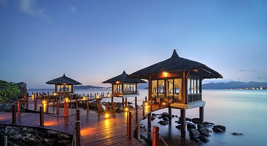 Beds feature premium bedding. Spacious villas showcase elegant touches of traditional Vietnamese culture and are fitted with classic wooden furnishings. The resort is on a separate island called Hòn Tre island across Nha Trang Bay.